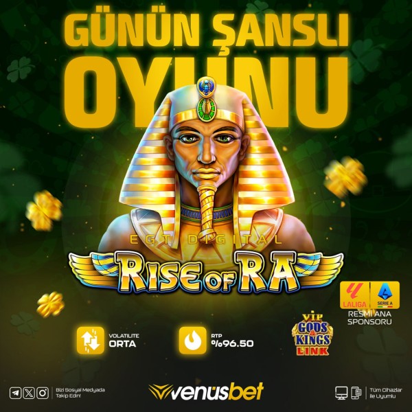 EGT Digital imzalı Rise of Ra, mitolojik atmosferi, büyüleyici sembolleri ve yüksek kazanç potansiyeliyle bugün Venusbet’te öne çıkıyor! 🌟