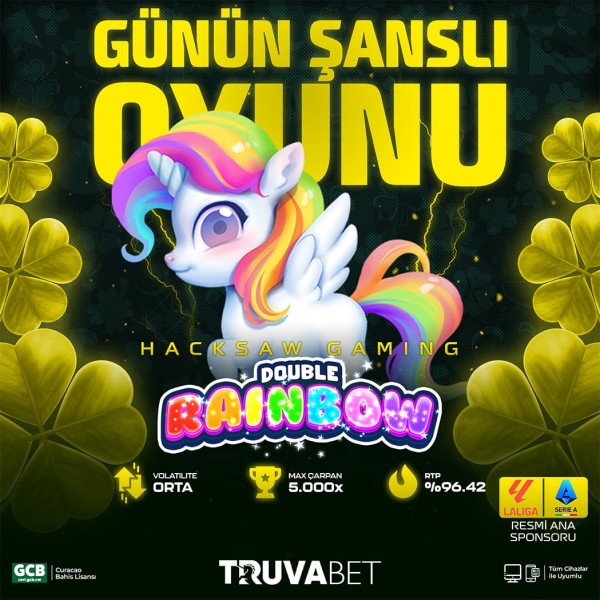 Bugün Truvabet’te Double Rainbow oyna, gökkuşağının sonunda seni bekleyen şansın tadını çıkar! 🌟💰