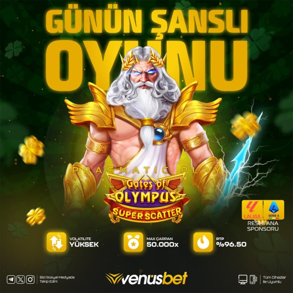 Bugün Venusbet’te Gates of Olympus Super Scatter oyna, tanrıların lütfuyla kazançlarını katla! ⚡💥