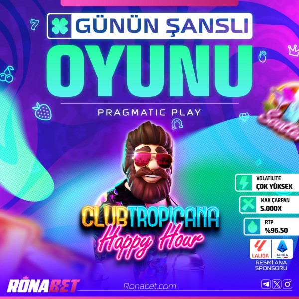 Bugün Ronabet’te Club Tropicana Happy Hour oyna, tropik kazançlarla güne enerjik başla! 🌺💰