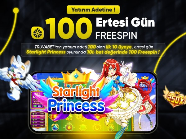 Kullanım Koşulu: Eklenen 100 Freespin yalnızca Starlight Princess oyununda kullanılabilir. Freespin kazancınızın herhangi bir çevrim şartı bulunmamaktadır.