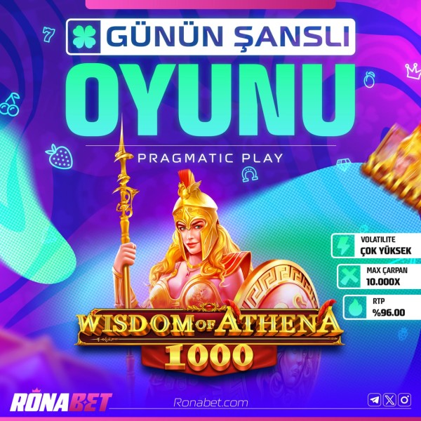 Bugünün şanslı oyunu Pragmatic Play’in dikkat çeken slotu Wisdom of Athena 1000! Çok yüksek volatilite, 10.000x’e kadar çarpan ve %96 RTP oranıyla oyunculara heyecan dolu kazanç fırsatları sunuyor. Ronabet’te denemek için hemen oyuna göz atabilirsiniz.